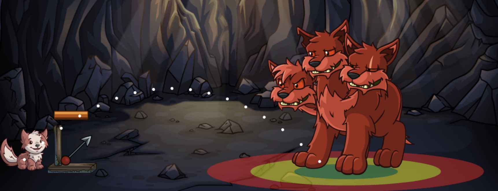 Play as a cute Dogglefox, who is trying to make friends with the three-headed Luperus by playing fetch! Use the oscillating arrow to set the trajectory at which the stick should be launched, and then set the power of your throw. Earn points that correlate with what ring your throw lands in and become friends with Luperus!
